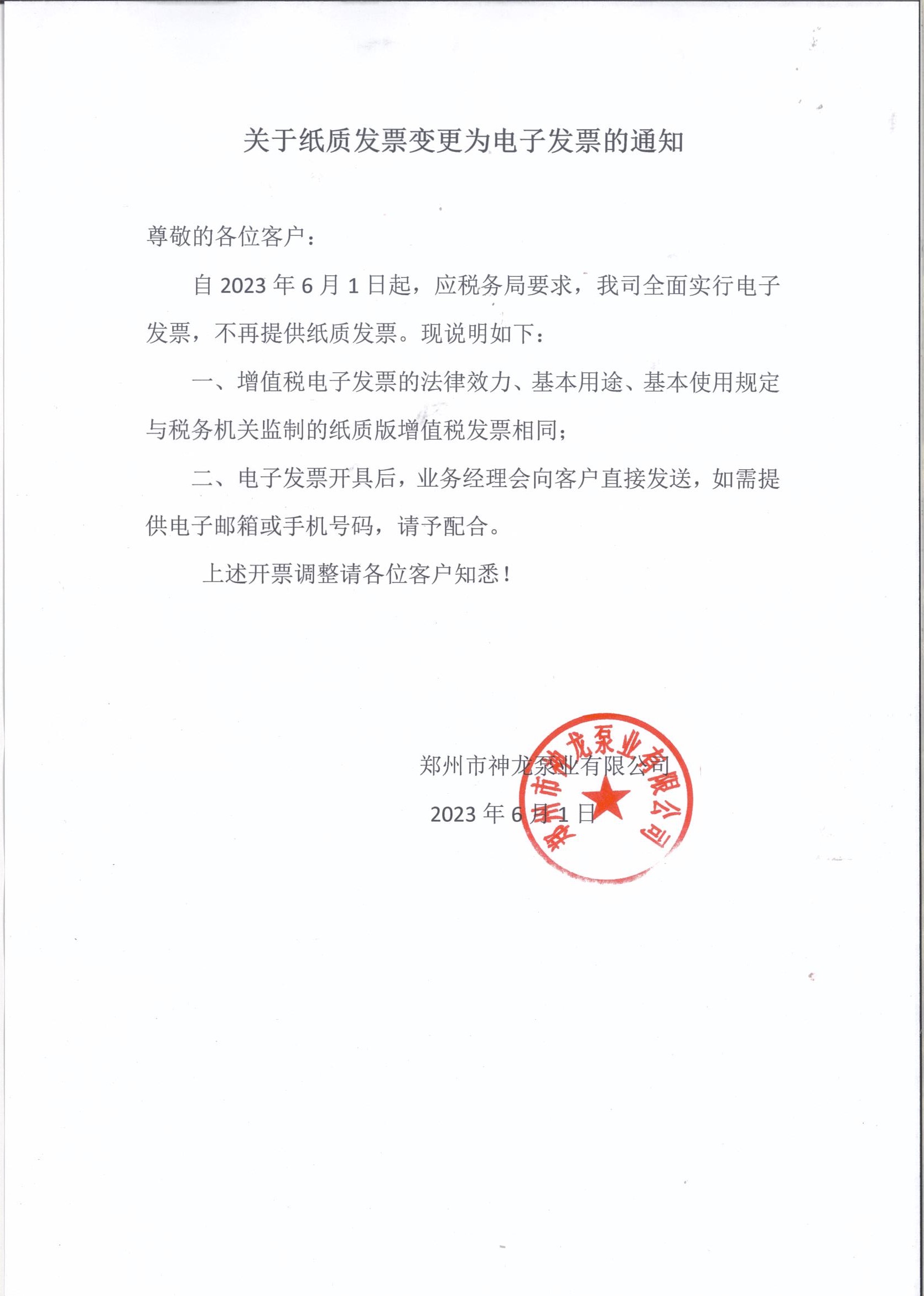 關于紙質發票變更為電子發票的通知
