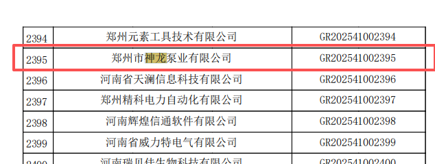 神龍泵業成為2025年第一批認定報備的高新技術企業